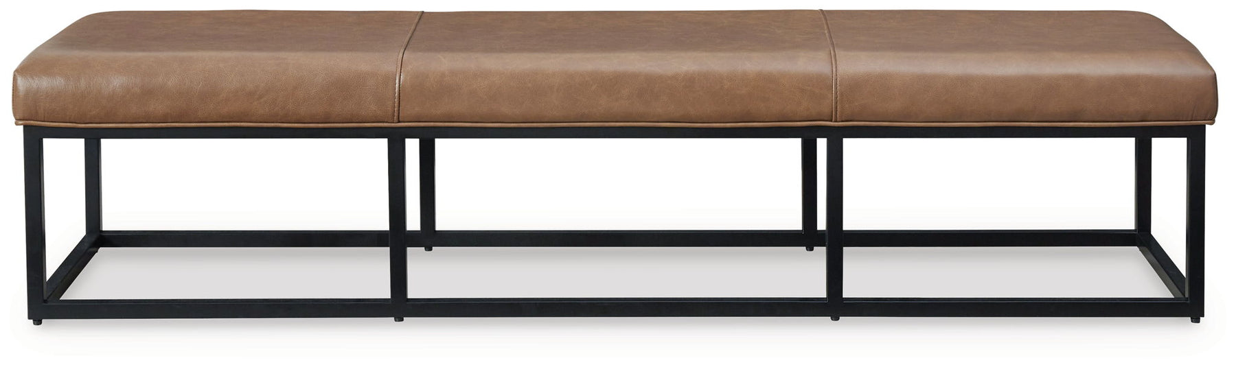 This accent bench takes a contemporary approach to everyday function. Showcasing a sleek combo of caramel leather upholstery and a black frame, it's a chic and convenient seating solution. Place this bench by the entryway, or at the foot of your bed, as a spot for slipping on shoes or resting bags and purses.